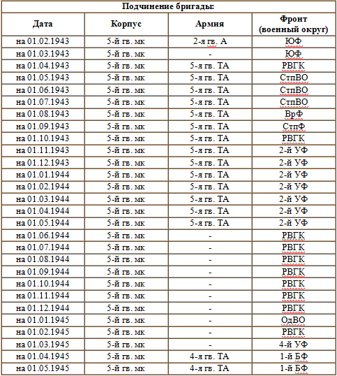 Командный состав • Формирование и организация • Боевой и численный состав • Боевой путь